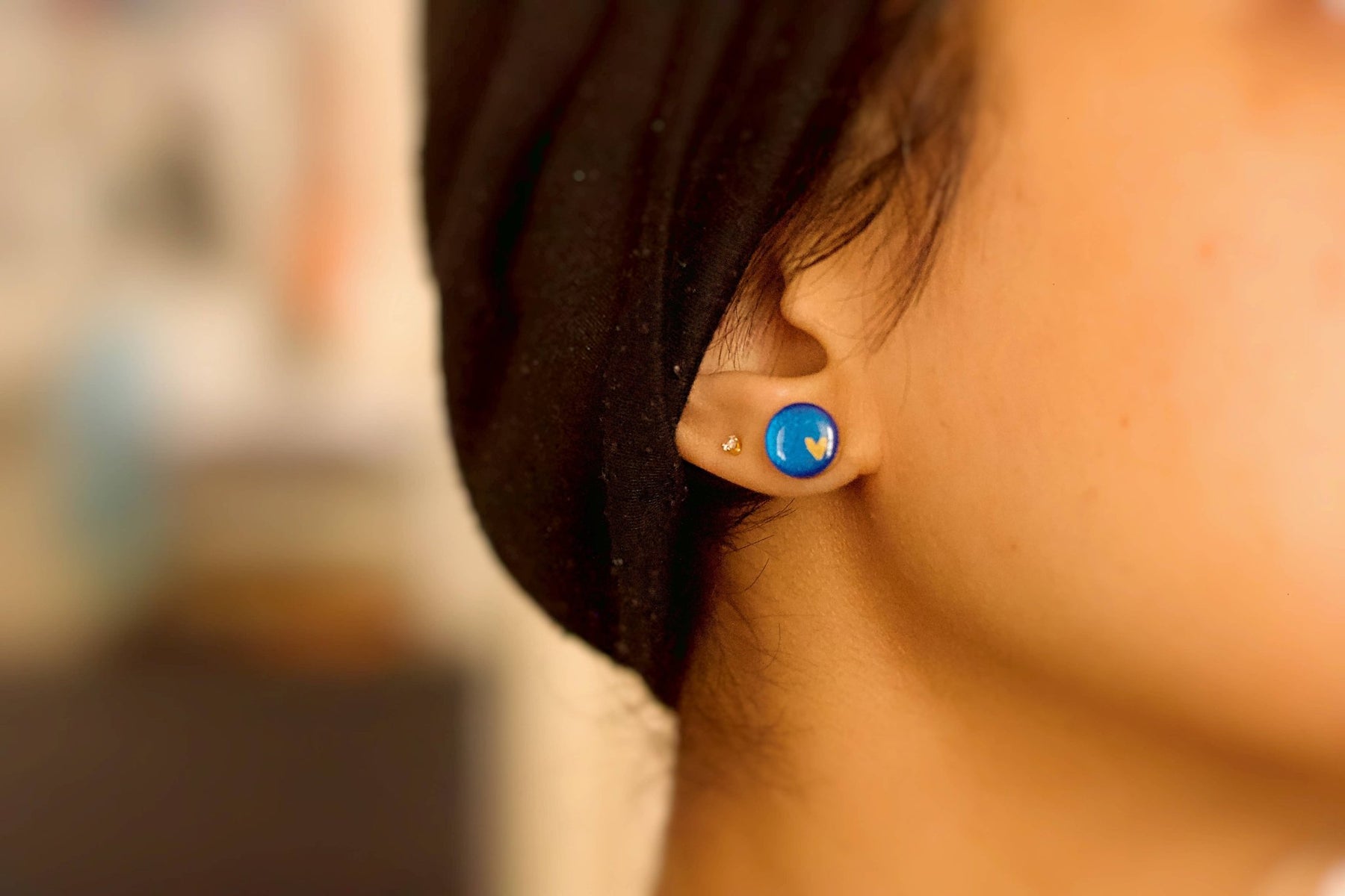 • All earrings are finished with a coat of resin making them splash-proof but please avoid wearing them in the shower or while swimming.